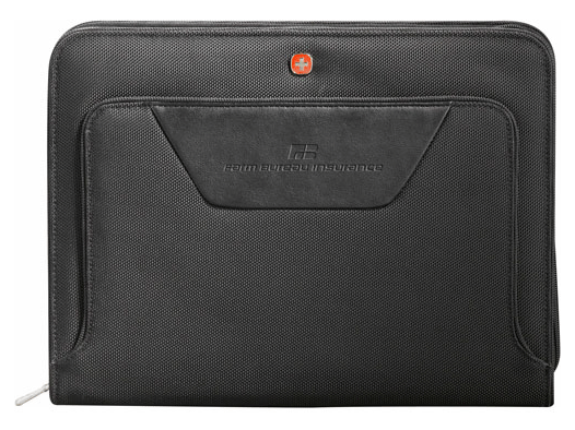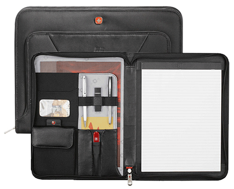 Item Information : 13.5" (height) x 10.38" (width) x 1" (length) ballistic polyster cover with ultrahyde accents with a full zipper closure. Front cover organizational pocket. Interior organization includes innovative snap-back USB holder flash drive pocket, clear ID window, knife/pen pocket, three elastic storage loops. Storage pocket with Velcro® closure, and documents pocket. Includes 8 1/2" x 11" writing pad [ambidextrous paper pad holder]. Gift box included.